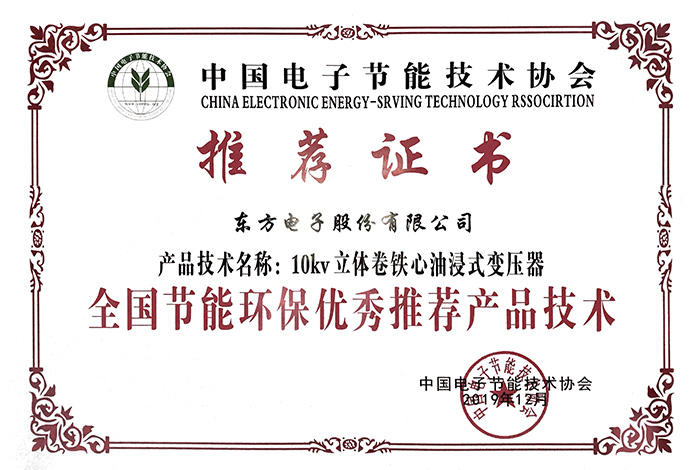 中國電子節能技術協會推薦證書